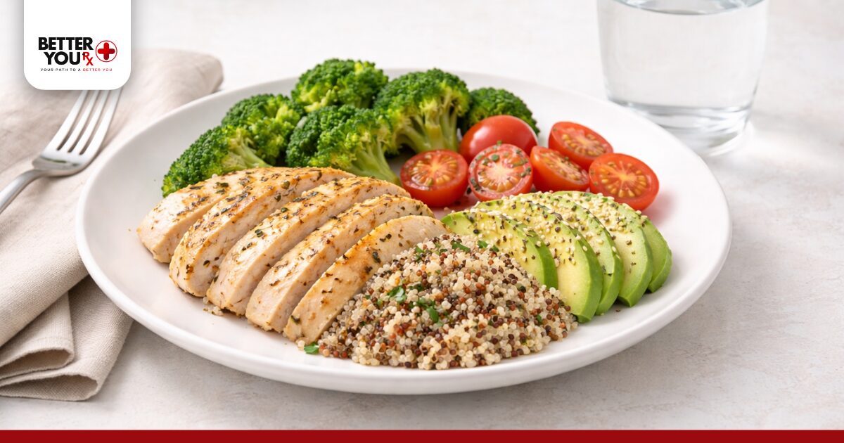 Start with smaller meals throughout the day rather than two or three large ones. Both medications work best when you are not overwhelming your digestive system. With Ozempic, eating slowly helps prevent nausea. With Phentermine, eating protein-rich breakfasts can help extend the appetite-suppressing effect.